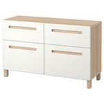 Благодаря доводчикам ящики и дверцы закрываются плавно и бесшумно. Ножки придают комбинации БЕСТО более легкий вид, поднимая модули на полом. Кроме того, это упрощает уборку. Два ящика и полки за дверцами обеспечат достаточно места для хранения.
