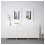 Благодаря доводчикам ящики и дверцы закрываются плавно и бесшумно. Ножки придают комбинации БЕСТО более легкий вид, поднимая модули на полом. Кроме того, это упрощает уборку. Два ящика и полки за дверцами обеспечат достаточно места для хранения.