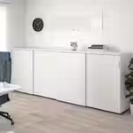 Благодаря хранению за раздвижными дверцами вы сможете легко достать все необходимое, наслаждаясь более организованной обстановкой для работы.