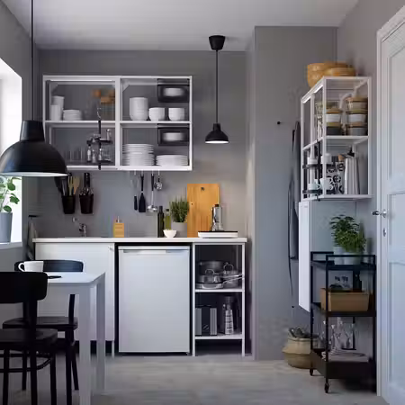 Серия ЭНХЕТ позволяет легко создавать комбинации мебели, чтобы обновить даже маленькую кухню, ванную или домашнюю прачечную.