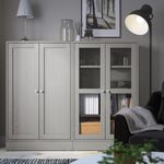 Комбинация для хранения с стеклянная дверцы, 162x37x134 см, серый IKEA HAVSTA ХАВСТА включает в себя следующие материалы: