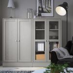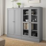 Комбинация для хранения с стеклянная двр, серый 162x37x134 см IKEA HAVSTA ХАВСТА включает в себя следующие материалы: