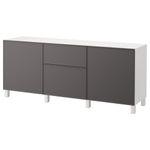 Благодаря доводчикам ящики и дверцы закрываются плавно и бесшумно. Ножки придают комбинации БЕСТО более легкий вид, поднимая модули на полом. Кроме того, это упрощает уборку. Два ящика и полки за дверцами обеспечат достаточно места для хранения.