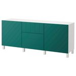 Комбинация для хранения с ящиками, белый, Халлставик сине-зеленый (180x40x74 см)