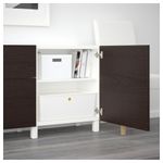 Благодаря доводчикам ящики и дверцы закрываются плавно и бесшумно. Ножки придают комбинации БЕСТО более легкий вид, поднимая модули на полом. Кроме того, это упрощает уборку. Два ящика и полки за дверцами обеспечат достаточно места для хранения.