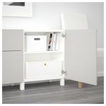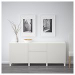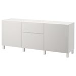 Благодаря доводчикам ящики и дверцы закрываются плавно и бесшумно. Ножки придают комбинации БЕСТО более легкий вид, поднимая модули на полом. Кроме того, это упрощает уборку. Два ящика и полки за дверцами обеспечат достаточно места для хранения.