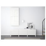 Благодаря доводчикам ящики закрываются плавно и бесшумно Ножки придают комбинации БЕСТО более легкий вид, поднимая модули на полом. Кроме того, это упрощает уборку. Эту мебель необходимо крепить к стене с помощью прилагаемого стенного крепежа.