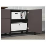 Благодаря доводчикам ящики и дверцы закрываются плавно и бесшумно. Ножки придают комбинации БЕСТО более легкий вид, поднимая модули на полом. Кроме того, это упрощает уборку. Два ящика и полки за дверцами обеспечат достаточно места для хранения.