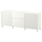 Благодаря доводчикам ящики и дверцы закрываются плавно и бесшумно. Ножки придают комбинации БЕСТО более легкий вид, поднимая модули на полом. Кроме того, это упрощает уборку. Два ящика и полки за дверцами обеспечат достаточно места для хранения.