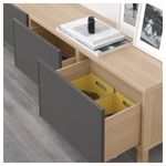 Благодаря интегрированному нажимному механизму ящики открываются легким нажатием. Ножки придают комбинации БЕСТО более легкий вид, поднимая модули на полом. Кроме того, это упрощает уборку. Три вместительных ящика обеспечат порядок в хранении.