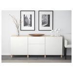 Благодаря доводчикам ящики и дверцы закрываются плавно и бесшумно. Ножки придают комбинации БЕСТО более легкий вид, поднимая модули на полом. Кроме того, это упрощает уборку. Два ящика и полки за дверцами обеспечат достаточно места для хранения.