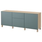 Благодаря доводчикам ящики и дверцы закрываются плавно и бесшумно. Ножки придают комбинации БЕСТО более легкий вид, поднимая модули на полом. Кроме того, это упрощает уборку. Два ящика и полки за дверцами обеспечат достаточно места для хранения.