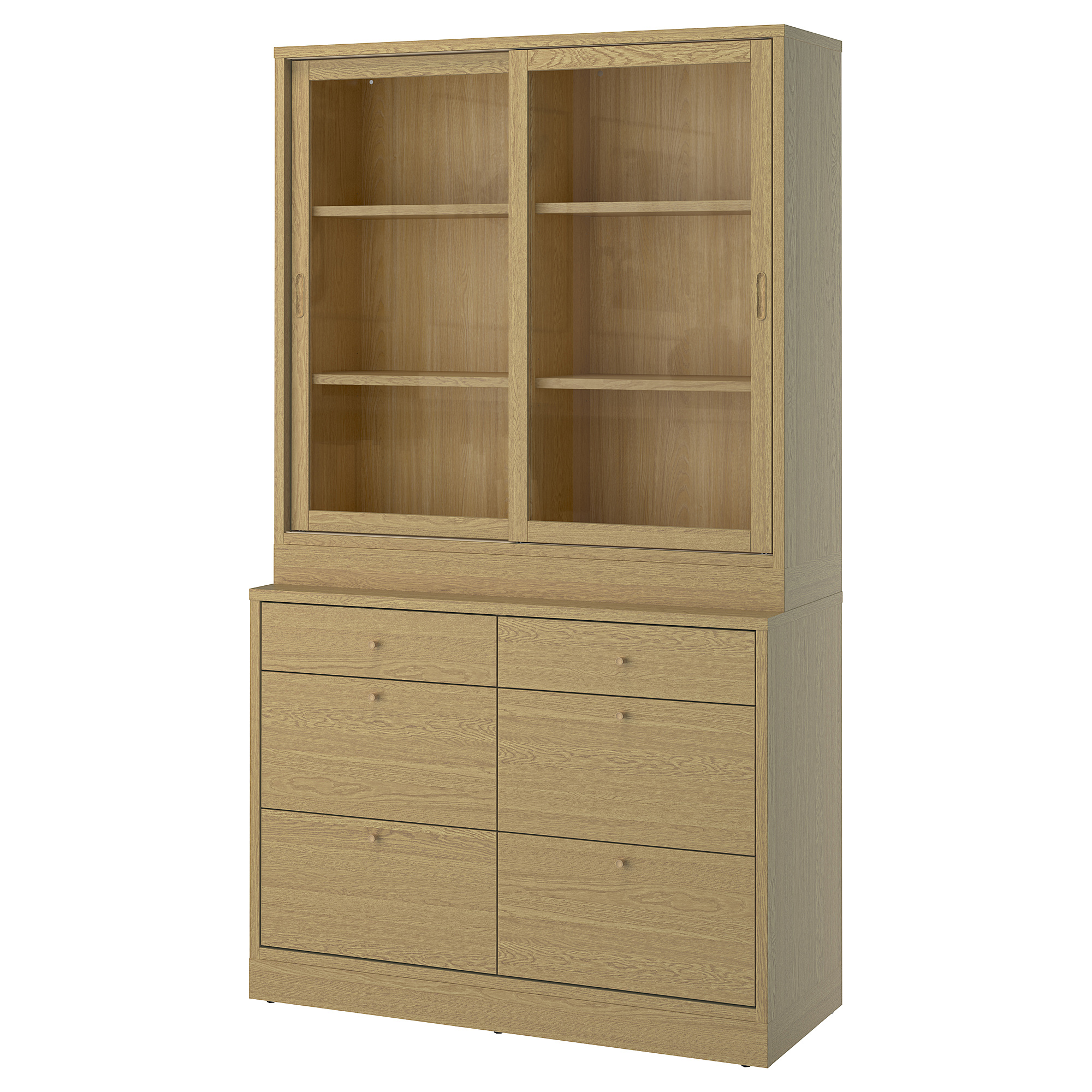 Комбинация для хранения с ящиками, дубовый шпон, стекло, 121x47x210 см IKEA TONSTAD включает в себя следующие материалы: