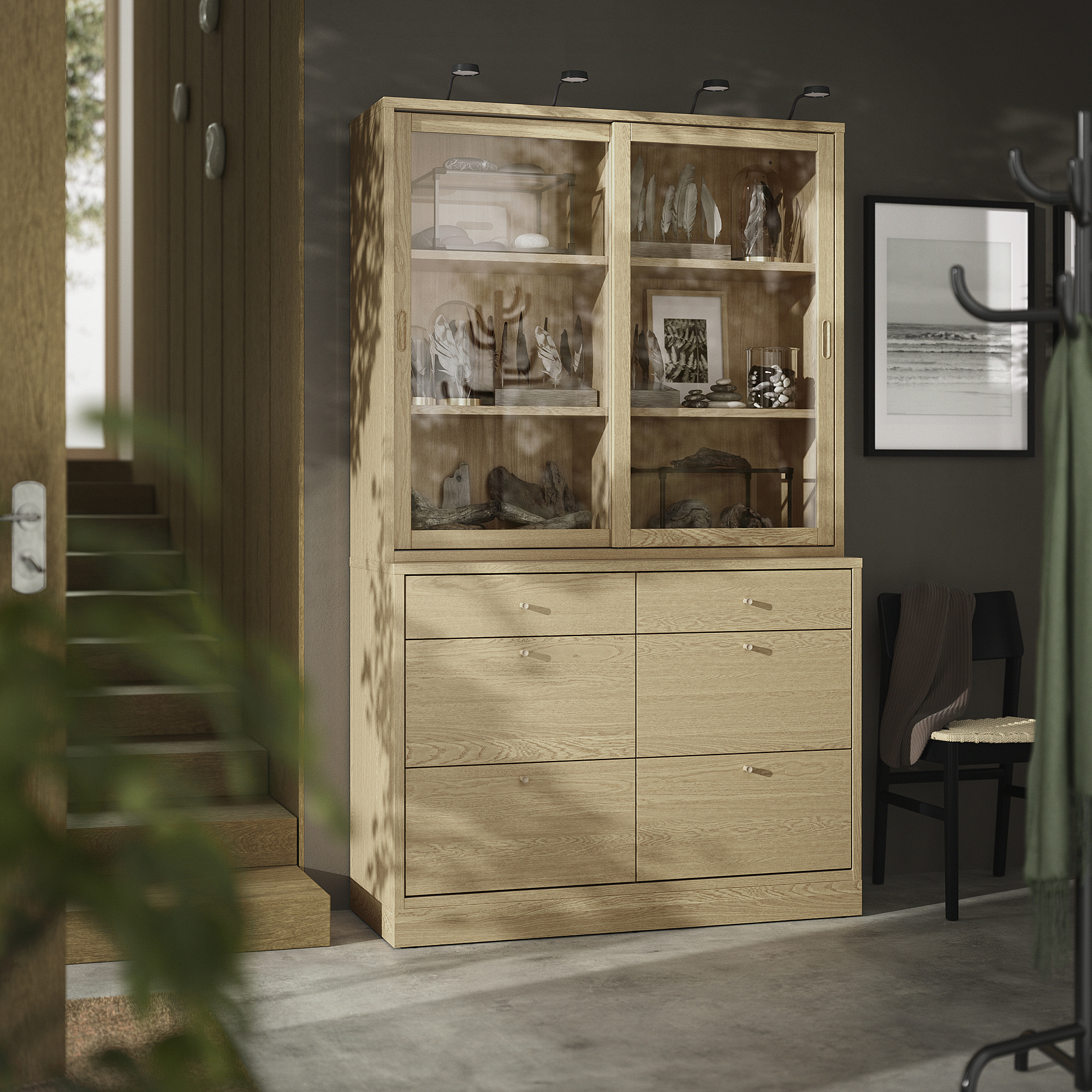 Особенности «TONSTAD комбинация для хранения с ящиками, дубовый шпон, стекло, 121x47x210 см» заявленные производителем IKЕА: