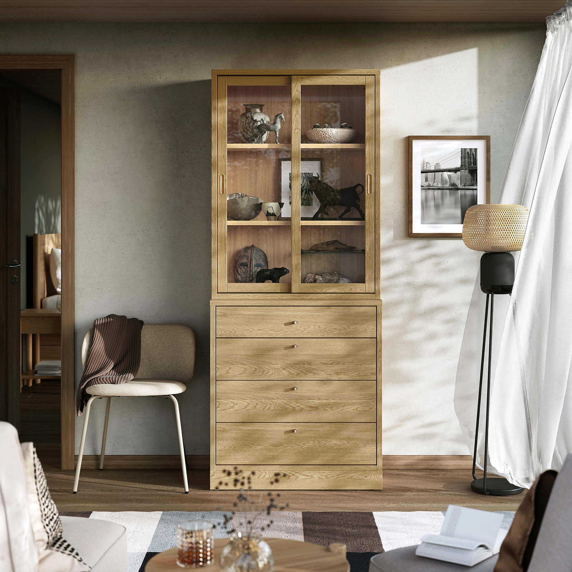Комбинация для хранения с ящиками, дубовый шпон, стекло, 82x47x210 см IKEA TONSTAD включает в себя следующие материалы: