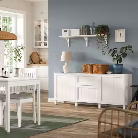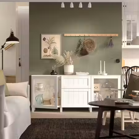 Просторный буфет подходит для хранения вещей, а его верхнюю поверхность можно использовать для любимых аксессуаров или хранения посуды во время еды.