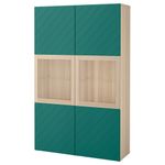 Купить Комбинация для хранения со стеклянными дверцами БЕСТО, под беленый дуб Халлставик, сине-зеленый прозрачное стекло в ИКЕА