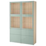 Комбинация для хранения со стеклянными дверцами БЕСТО, под беленый дуб Сельсвикен, глянцевый/серо-зеленый светлый прозрачное — купить в Минске | IKEA