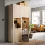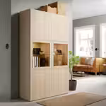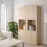 Стеклянные дверцы обеспечивают обзор содержимого, защищая его от пыли.