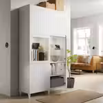 Стеклянные дверцы обеспечивают обзор содержимого, защищая его от пыли.