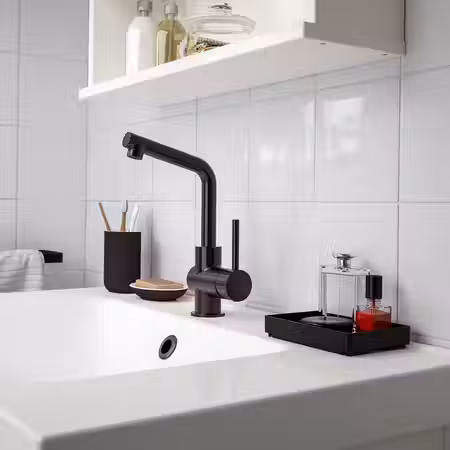 Мебель для ванной серии ХАВБЭКК отличается лаконичным дизайном.