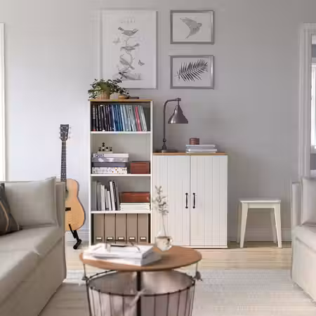 Комбинация из 2 и более шкафов ВИХАЛС будет выглядеть как единое целое, так как размеры полок идеально соответствуют друг другу.