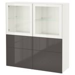 Комбинация для хранения со стеклянными дверцами, белый, Сельсвикен глянцевый/серый прозрачное стекло (120x40x128 см)