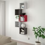 Ассиметричное расположение секций подчеркнет индивидуальность решения для хранения.Сборка очень проста благодаря штифтам, которые вставляются в подготовленные отверстия.Накладные шины ЭКЕТ для фиксации к стене прилагаются.