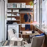 Система хранения ЙОСТЕЙН не боится повышенной влажности, так что ее смело можно ставить в ванную или прачечную или использовать на открытом воздухе, например, на балконе.