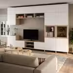 Добавьте к своему гардеробу PAX этот промежуточный модуль — в нём можно расставить красивые предметы и хранить любимую одежду и аксессуары. А с помощью стеклянных и деревянных полок с регулируемой высотой вы легко адаптируете пространство под