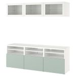 Комбинация для ТВ/стеклянные дверцы, белый Синдвик/Хёртвикен бледный серо-зеленый 180x42x192 см IKEA BESTÅ БЕСТО включает в себя следующие материалы:
