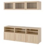 Комбинация для ТВ/стеклянные дверцы, под беленый дуб Синдвик/Ханвикен под беленый дуб, прозрачное стелко 180x42x192 см IKEA BESTÅ БЕСТО включает в себя следующие материалы: