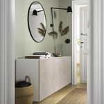 Настенное крепление придает тумбе лаконичный современный вид и облегчает уборку пола. Съемные полки позволяют регулировать внутреннее пространство в соответствии с потребностями хранения.