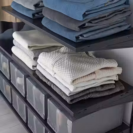 В этом гардеробе найдется отделение для всего на свете. Он подходит для тех, кто привык точно знать, где лежит каждая вещь независимо от ее размера, и при этом сохранять хороший обзор. Демонстрируйте свой идеальный порядок всем