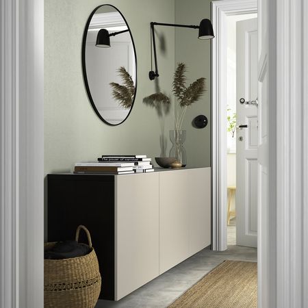 Эту комбинацию шкафов легко повесить на стену, используя настенные шины (входят в комплект).