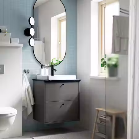 Мебель для ванной серии ХАВБЭКК отличается лаконичным дизайном.