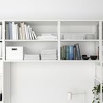 Из модулей системы можно выстраивать разные комбинации — высокие и низкие, под скошенными потолками и лестницами, вокруг окна и даже вдоль целой стены.