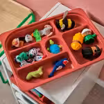 Отсеки в лотке помогут вашему ребенку научиться хранить вещи в порядке и легко находить мелкие предметы, такие как фломастеры, бусинки, ниточки, игрушечные фигурки и коллекции.