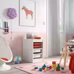 Расположите модули для хранения на удобной для ребенка высоте, и он сможет самостоятельно достать нужную вещь и навести порядок.