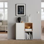 Комбинируйте открытое и закрытое хранение в зависимости от потребностей.Низкая комбинация позволит создать удобное решение для хранения, например, под подоконником.Дверца со встроенным нажимным механизмом открывается легким нажатием.
