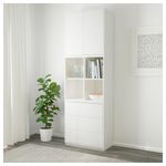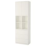 Комбинируйте открытое и закрытое хранение в зависимости от потребностей. Благодаря интегрированному нажимному механизму ящики и дверцы открываются легким нажатием. Эту мебель необходимо крепить к стене с помощью прилагаемого стенного крепежа.