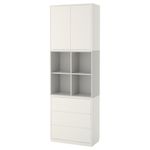 Комбинируйте открытое и закрытое хранение в зависимости от потребностей. Благодаря интегрированному нажимному механизму ящики и дверцы открываются легким нажатием. Эту мебель необходимо крепить к стене с помощью прилагаемого стенного крепежа.