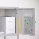 Важные документы, счета и письма можно хранить в дверце шкафчика, оснащенной специальным держателем.