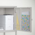 Важные документы, счета и письма можно хранить в дверце шкафчика, оснащенной специальным держателем.Можно дополнить ножками или поставить непосредственно на пол.