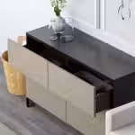 Мебель для ванной ЭНГШЁН выглядит современно и лаконично с минимумом деталей.