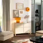 Просторный буфет подходит для хранения вещей, а его верхнюю поверхность можно использовать для любимых аксессуаров или хранения посуды во время еды.