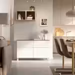 Просторный буфет подходит для хранения вещей, а его верхнюю поверхность можно использовать для любимых аксессуаров или хранения посуды во время еды.