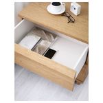 Естественный рисунок и выразительная фактура дубового шпона подчеркнуты брашированием и обработкой матовым лаком. Благодаря интегрированным доводчикам ящики закрываются медленно, плавно и бесшумно.