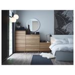 "В процессе создания серии ОППЛАНД мне было очень интересно работать с брашированным шпоном. Такой вариант отделки придает мебели стильный облик, подчеркивая ее качество. Эти черты мне хотелось передать и в деталях: удобных ручках и плавно закрывающихся ящиках. Текстиль, обивка и мягкие материалы очень важны для создания в спальне располагающей атмосферы. Поэтому я дополнила изголовье чехлом, который можно стирать и который будет прекрасно сочетаться с подушками и пуховым одеялом. Надеюсь, эта мебель сделает вашу спальню по-настоящему уютной и комфортной".
