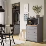 Можно использовать по отдельности или в комбинации с другой мебелью серии ХАУГА, чтобы выдержать интерьер в едином стиле и создать более вместительное решение для хранения.